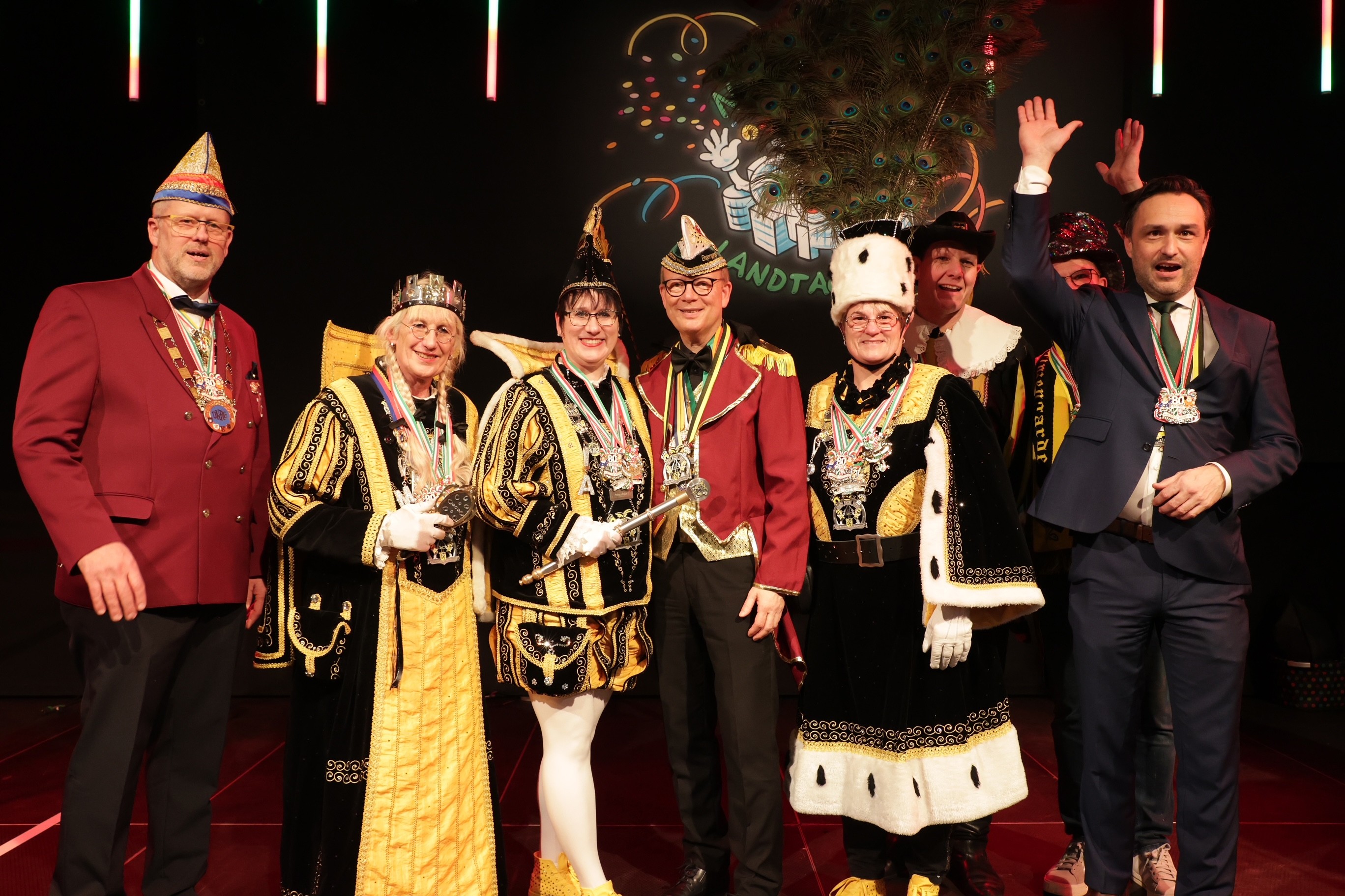 Landtagspräsident André Kuper begrüßte über 160 Prinzenpaare, Dreigestirne und Tollitäten aus allen Regionen des Landes. Auch das Bardenberger Dreigestirn tauschte mit ihm feierlich den Sessionsorden.